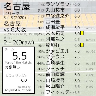 金崎がPKを外してくれて助かった僥倖のスコアレスドロー。。荒れた試合であまり見応えがない試合だった。前半までは名古屋も攻めているように見える試合だったが、後半は受けに回ることが多く、ゴールの香りは全く…