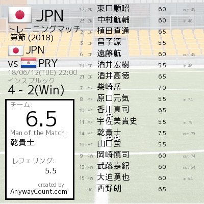 さらに表示 日本 – パラグアイ日本 – マリ 前半感想